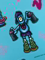 Also has alternate colour variation of my monster spray can sticker and short bio of Artie. A durable vinyl sticker sheet with a matt finish. Easy to peel.
